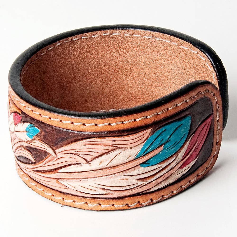 ADBRF154 Hand tooled carved Genuine Leather Bracelet women