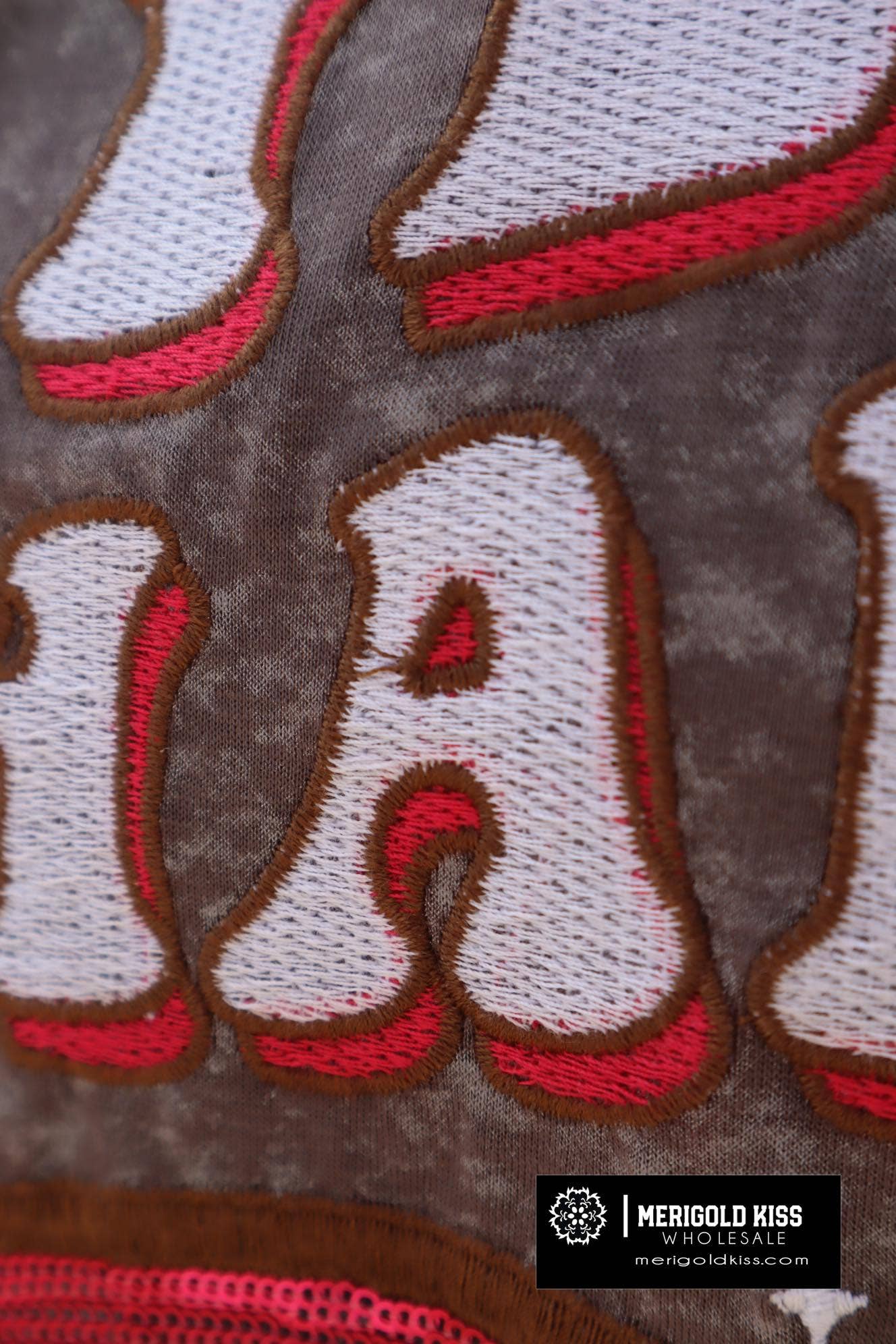 This acid washed dark gray heather tee dress will have you hollerin' YEE HAW! Lettering is carefully embroidered in hot pink/pale gray while boots are crafted from both embroidery and matte sequins. This style is absolutely precious and will be so much fun to wear this spring and summer with boots, flip flops, or sandale and your favorite wild rag!