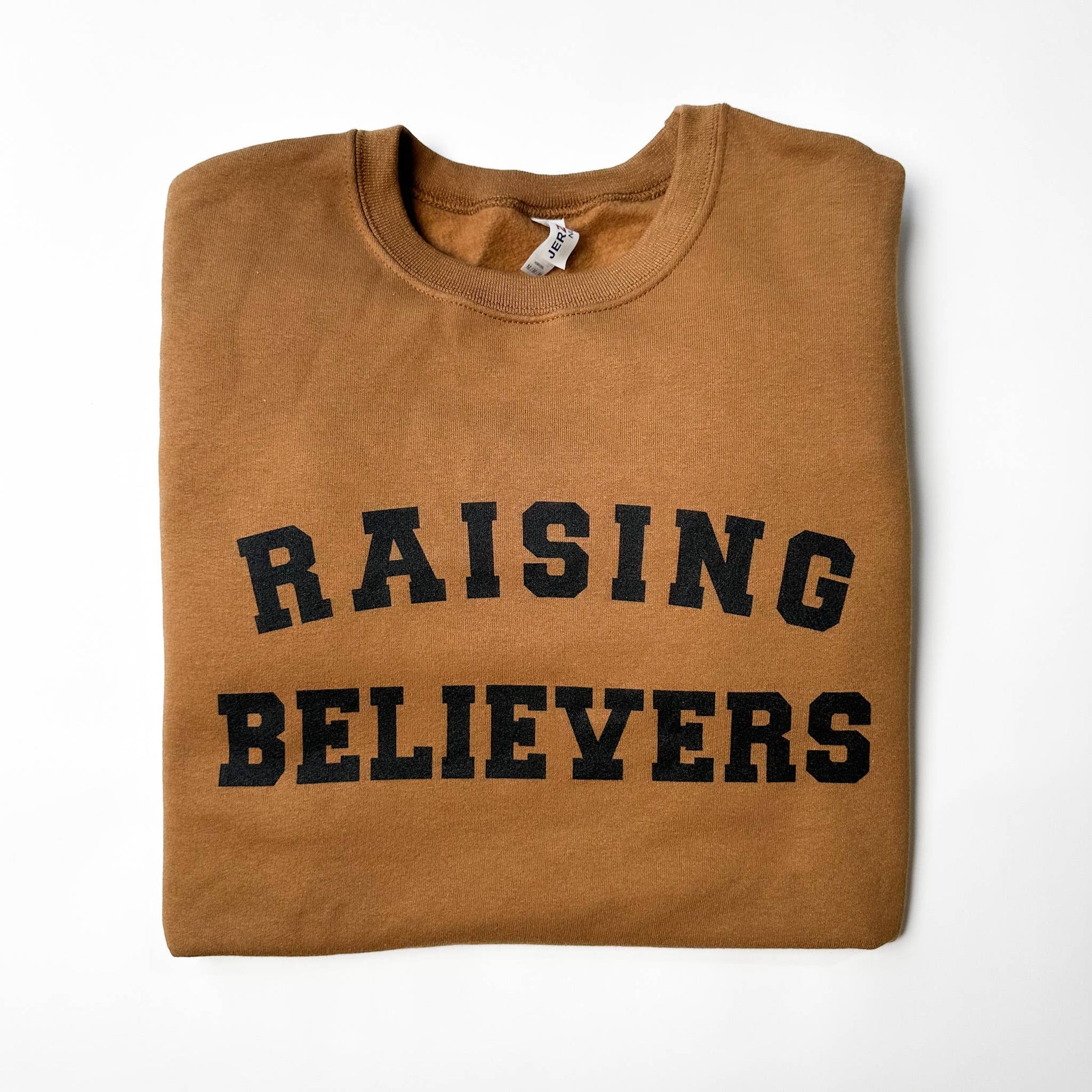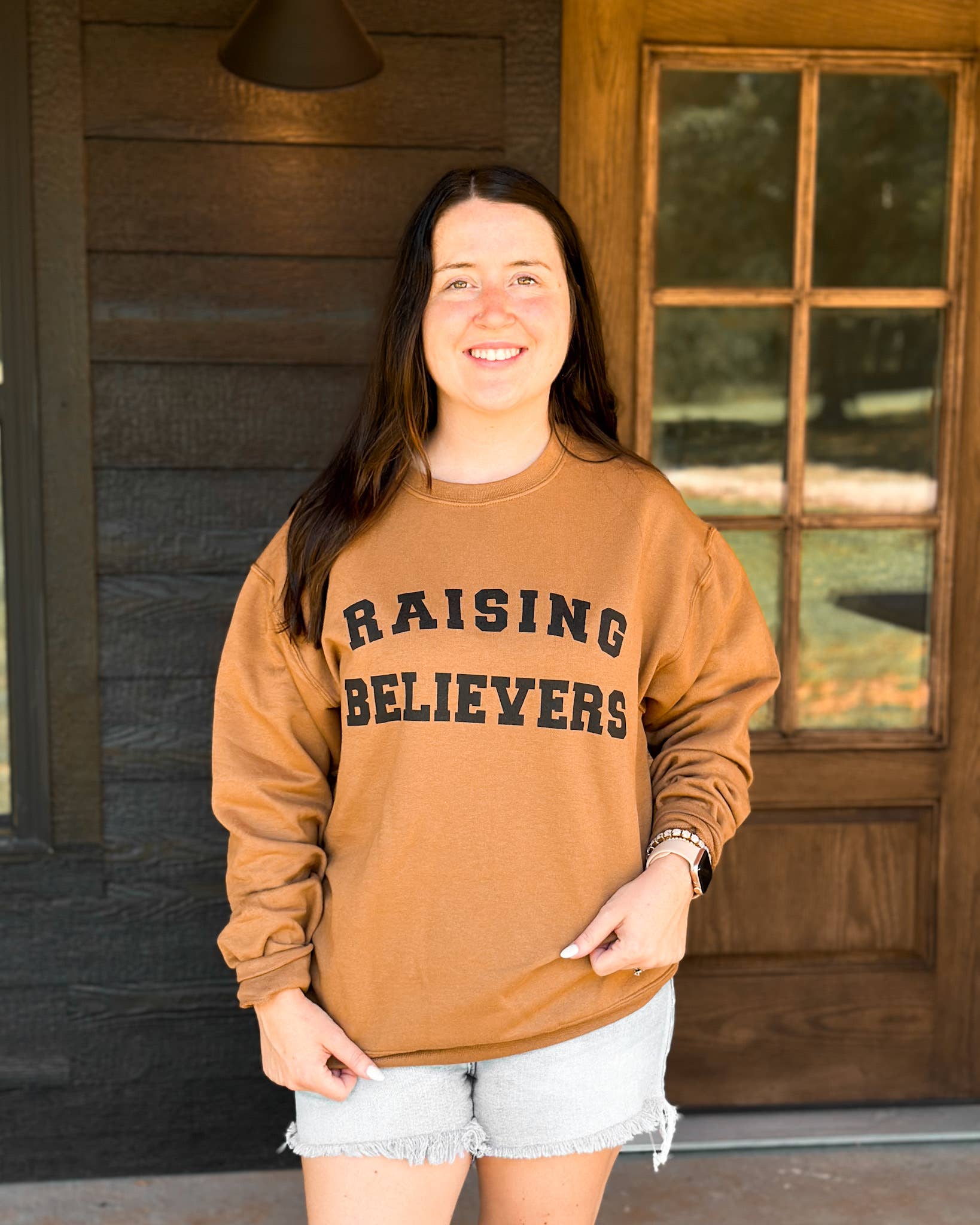 Rooted in faith and motherhood, this Jerzees sweatshirt features the bold message “Raising Believers” in varsity-style lettering. A comfy daily reminder of the mission that matters—raising kids in Christ.