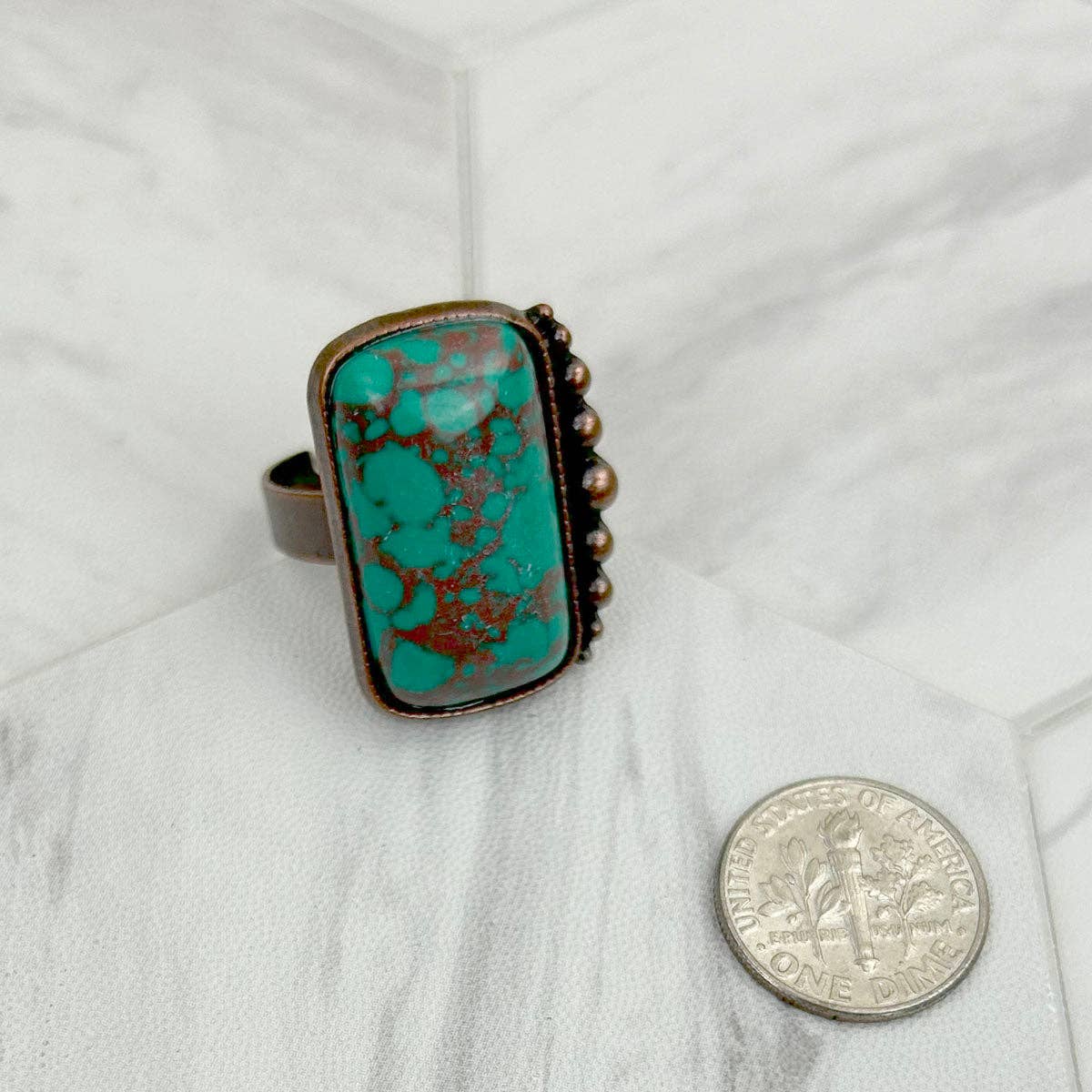 Copper metal with blue turquoise rectangle stone adjustable Ring