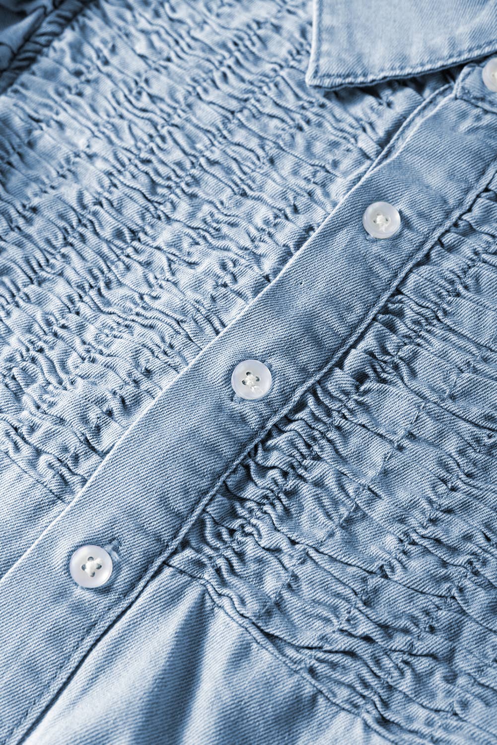 Shirred Ruffled Sleeve Button Up Denim Mini Dress | S-XL